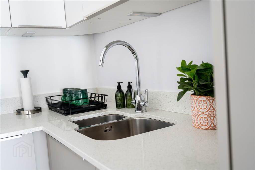 High quality luxury vinyl tiled flooring, floor to ceiling windows, communications points, sliding double glazed door to individual patio area, - KITCHEN: