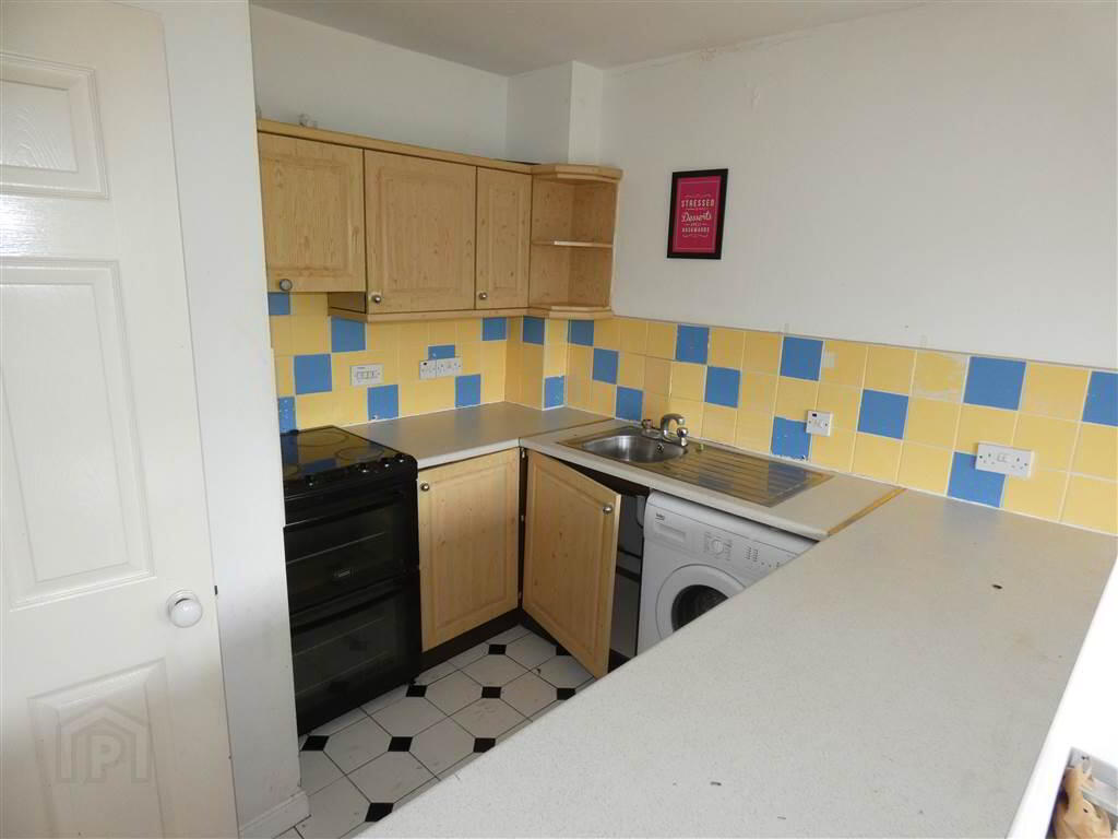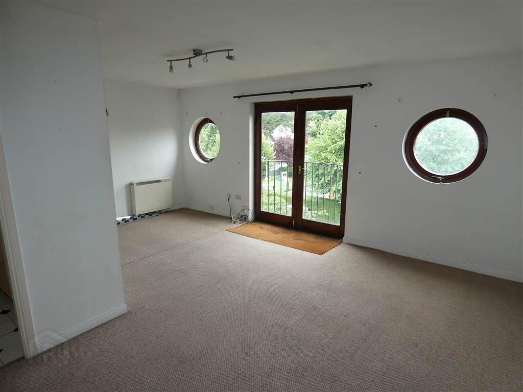Double doors to 'Juliet' style balcony, 2 feature circular windows, range of high & low level units, single drainer stainless style sink unit with mixer tap, cooker point with concealed extractor hood over, plumbed for washing machine, breakfast bar, partially tiled walls, ceramic tiled floor (kitchen area only).