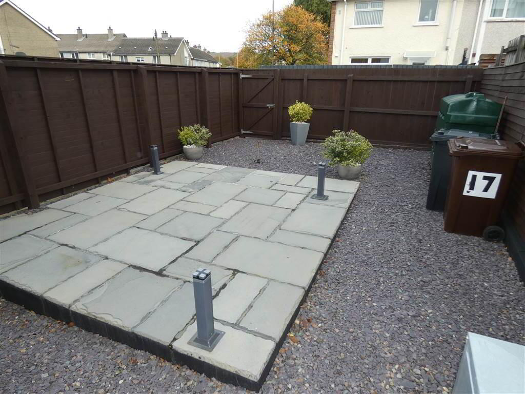 Fully enclosed garden to rear laid in loose stone, large patio area, outside light & tap, plastic oil storage tank, boiler hose containing oil fired boiler, bordered by timber fencing.