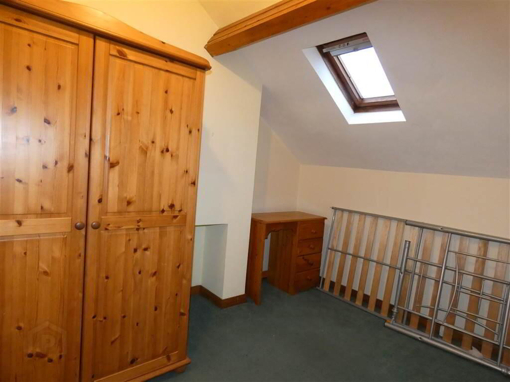Double panelled radiator, white suite comprising, low flush w.c., pedestal wash hand basin, panelled bath with 'Mira' electric shower over, cupboard containing copper cylinder, immersion heater, access to roof space.