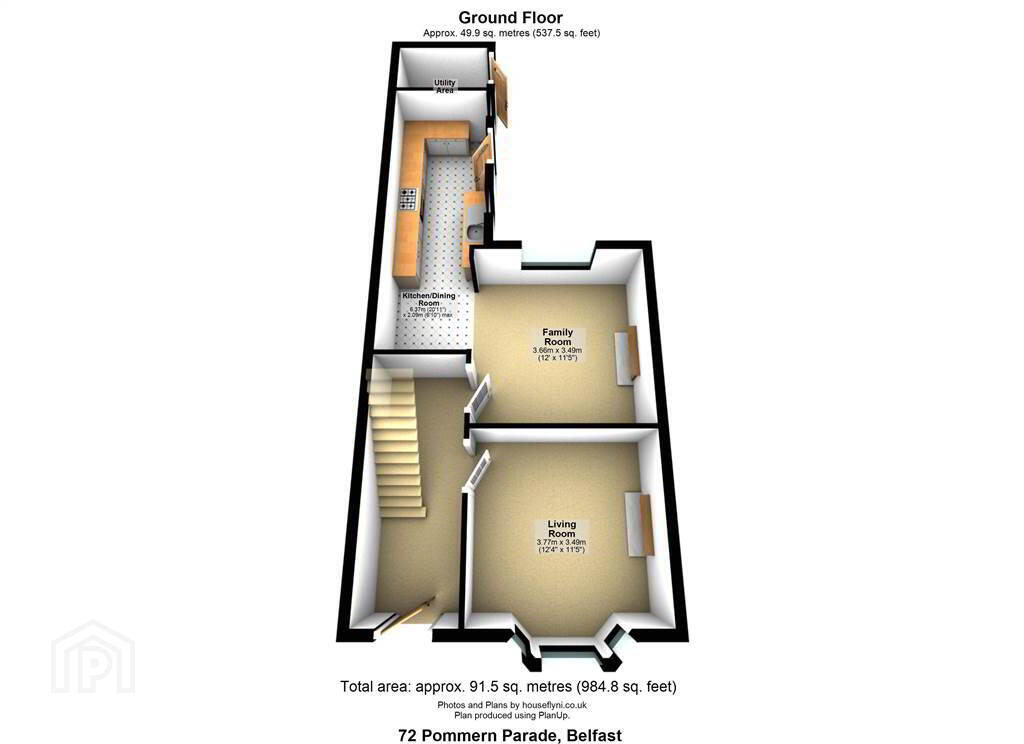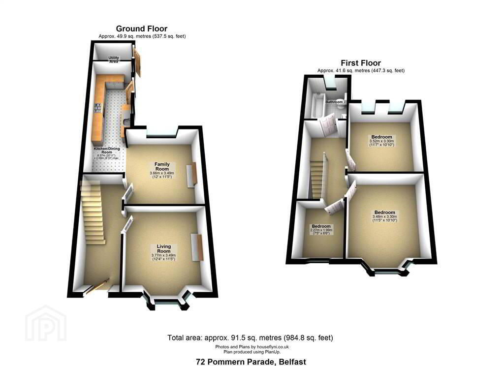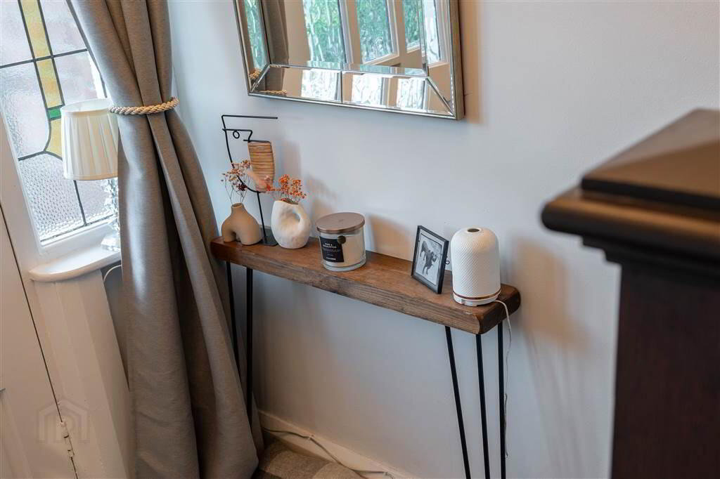 - Laminate herringbone flooring, corniced ceiling and picture rail, understair storage cupboard, alarm system.