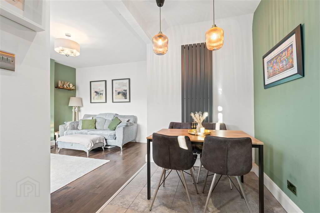 Internally, the home boasts a spacious and bright lounge featuring an attractive bay window and open fireplace, creating a welcoming focal point. The cosy dining room flows seamlessly into the modern fitted kitchen, making it perfect for both everyday living and entertaining. An extended utility area adds valuable practicality, while the contemporary white first floor family bathroom is finished to a high standard.