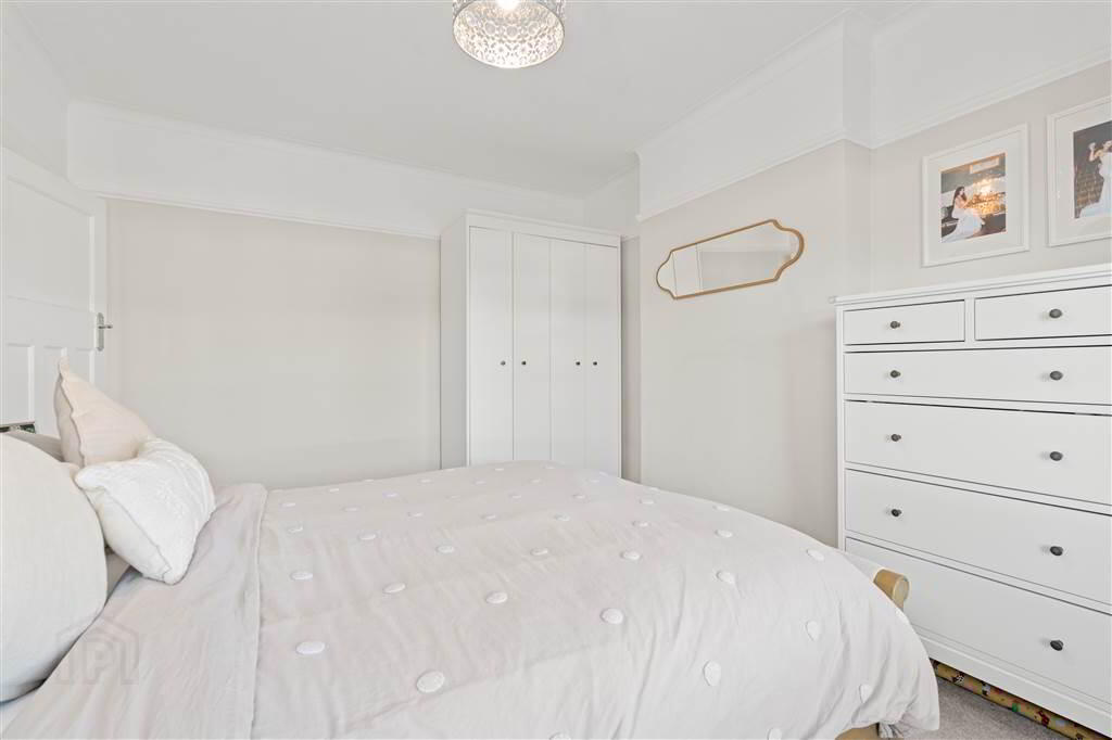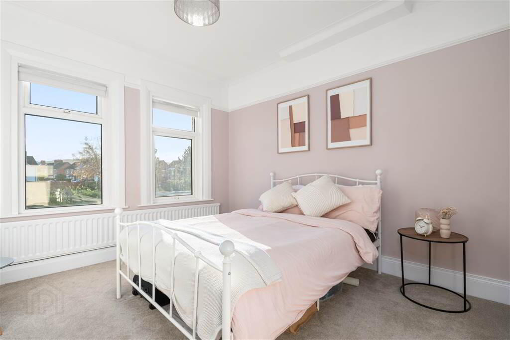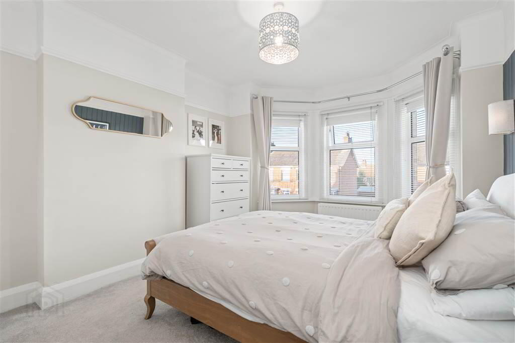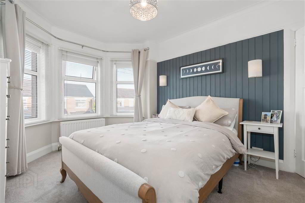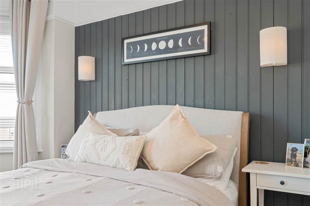 Feature bay window, partially panelled wall, picture rail. - BEDROOM (2):