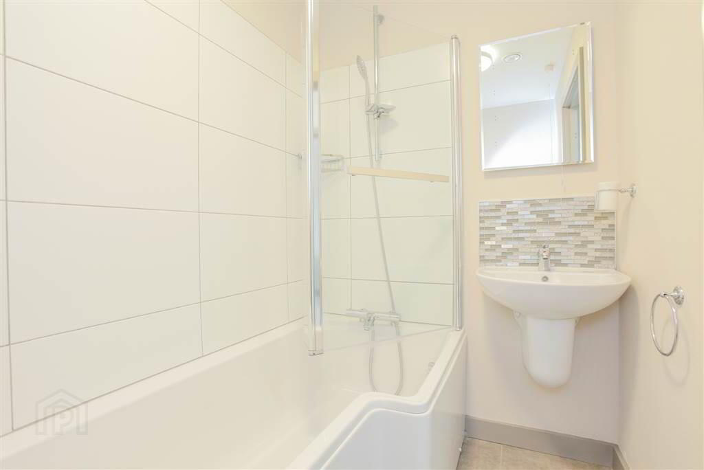 Contemporary White Bathroom Suite With Feature Floor & Wall Tiling